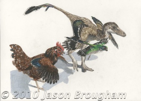 Three theropod dinosaurs: Gallus (the chicken) , Zhongornis, and Bambiraptor.