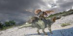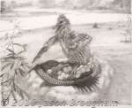 These are three illustrations I did for a commission last year. The assignment was to depict a scenario for the famous “Fighting Dinosaurs” fossil, from the Djadokhta Formation, Upper Cretaceous Mongolia. In these scenes Velociraptor mongoliensis is actively stalking, then attacking Protoceratops andrewsi. In the struggle the two then exhaust one another, collapsing just as a powerful rainstorm begins.