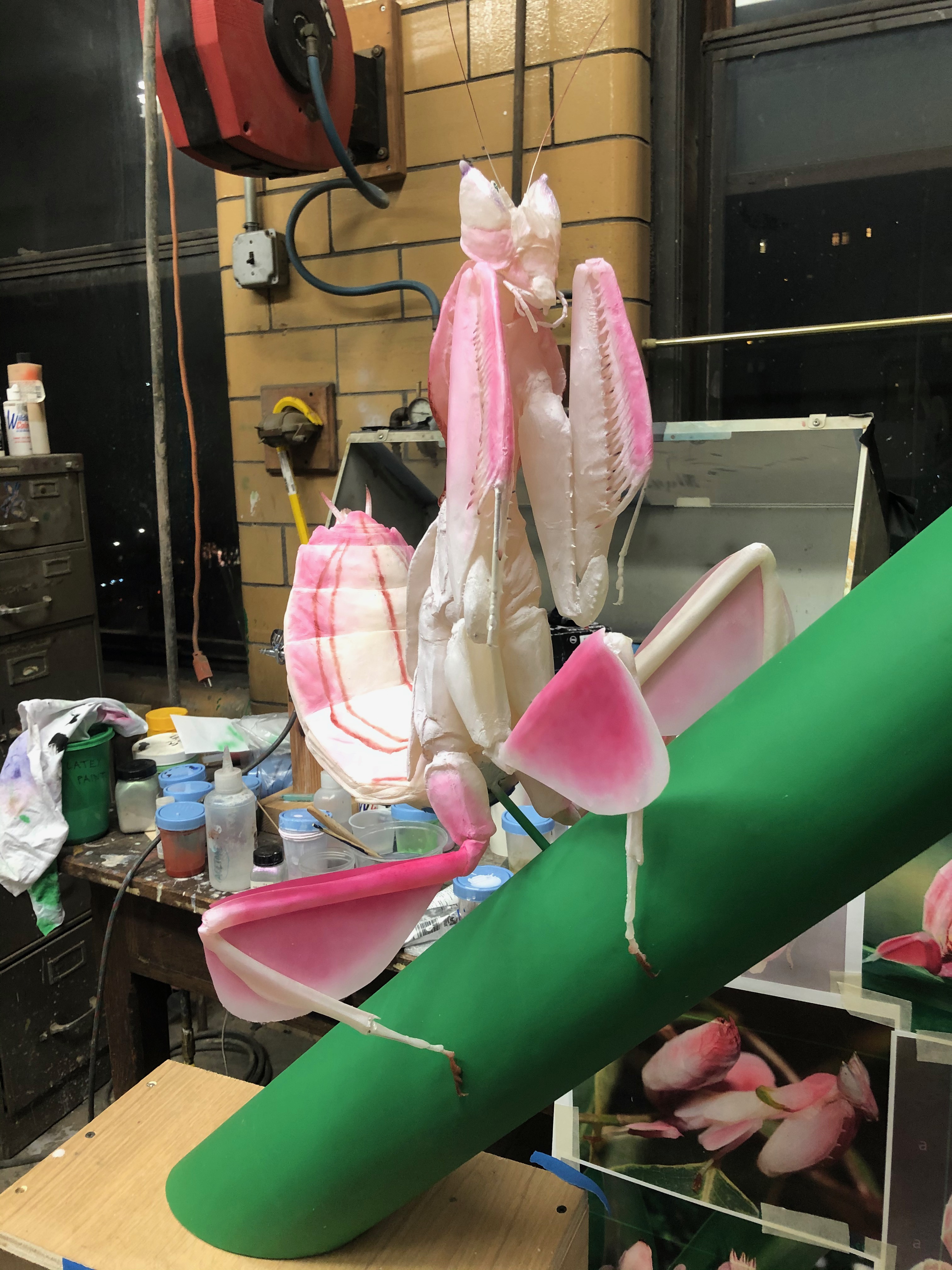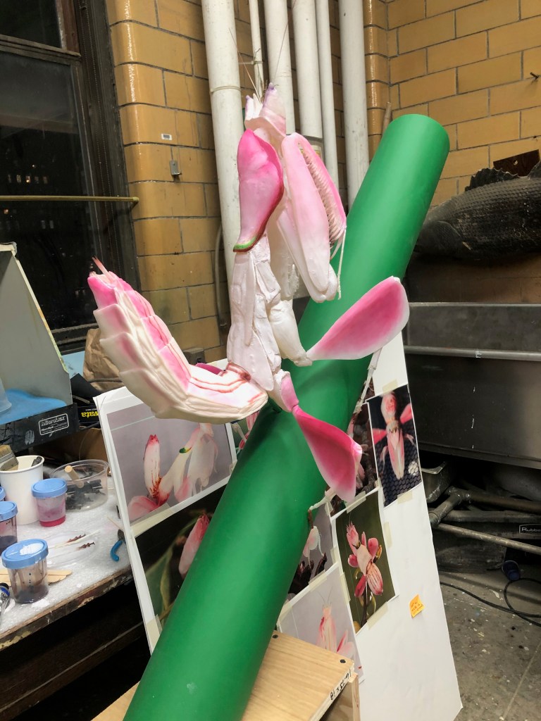 This is a sculpture of the Great Tailed Grackle, Quiscalus mexicanus. Depicted here is a behavior common in icterids, called ‘anting’. The bird has seized a single ant of genus Azteca. The ant releases formic acid as a chemical defense. The bird applies the acid to its feathers, inducing feather lice to drop off. Icterids really twist around to get all the hard to reach spots, and even fall over while doing this.